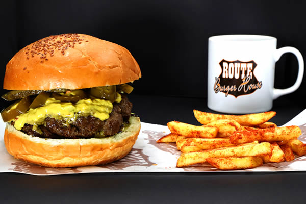 Hamburger Köftesi, Turşu, Karamelize Soğan, Cheddar Peyniri, Ballı Hardal Sos.